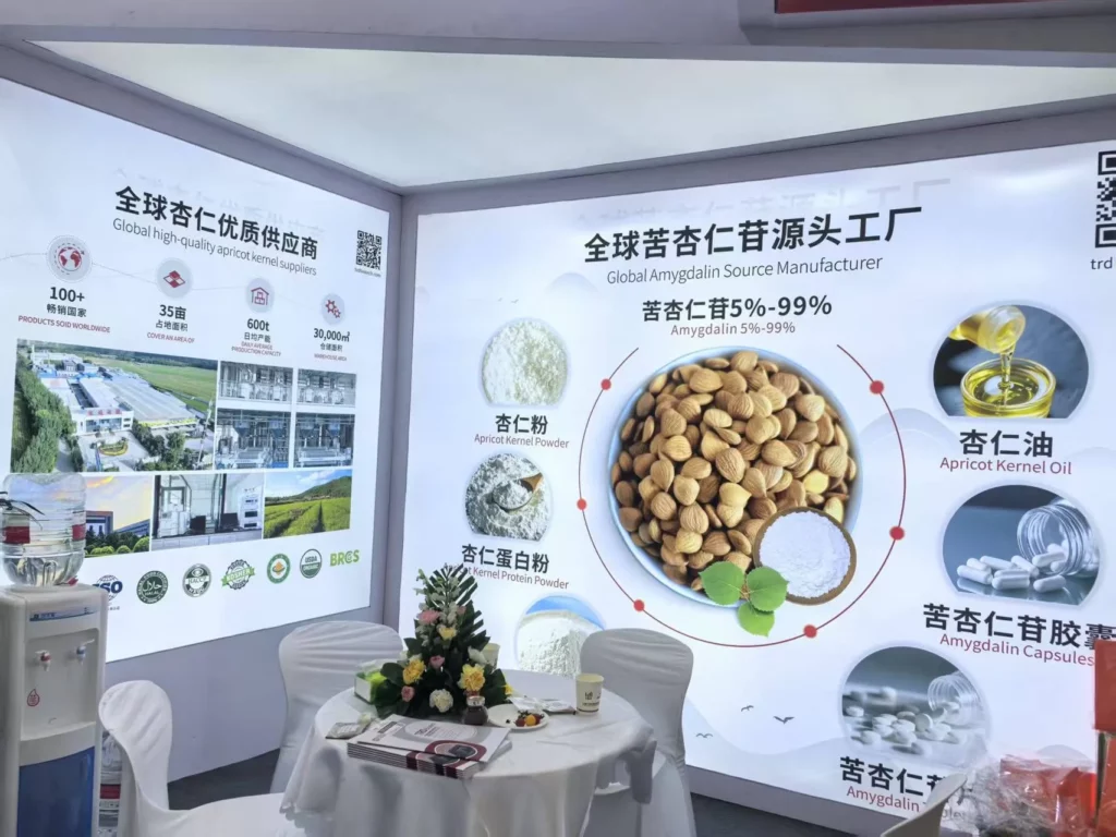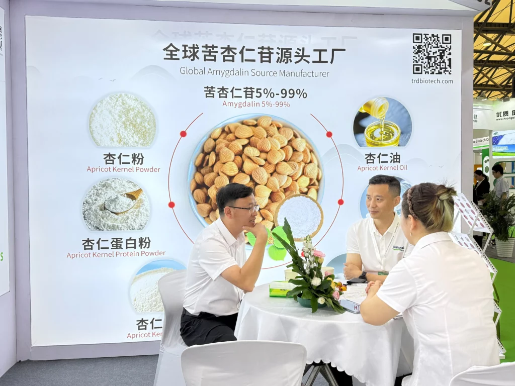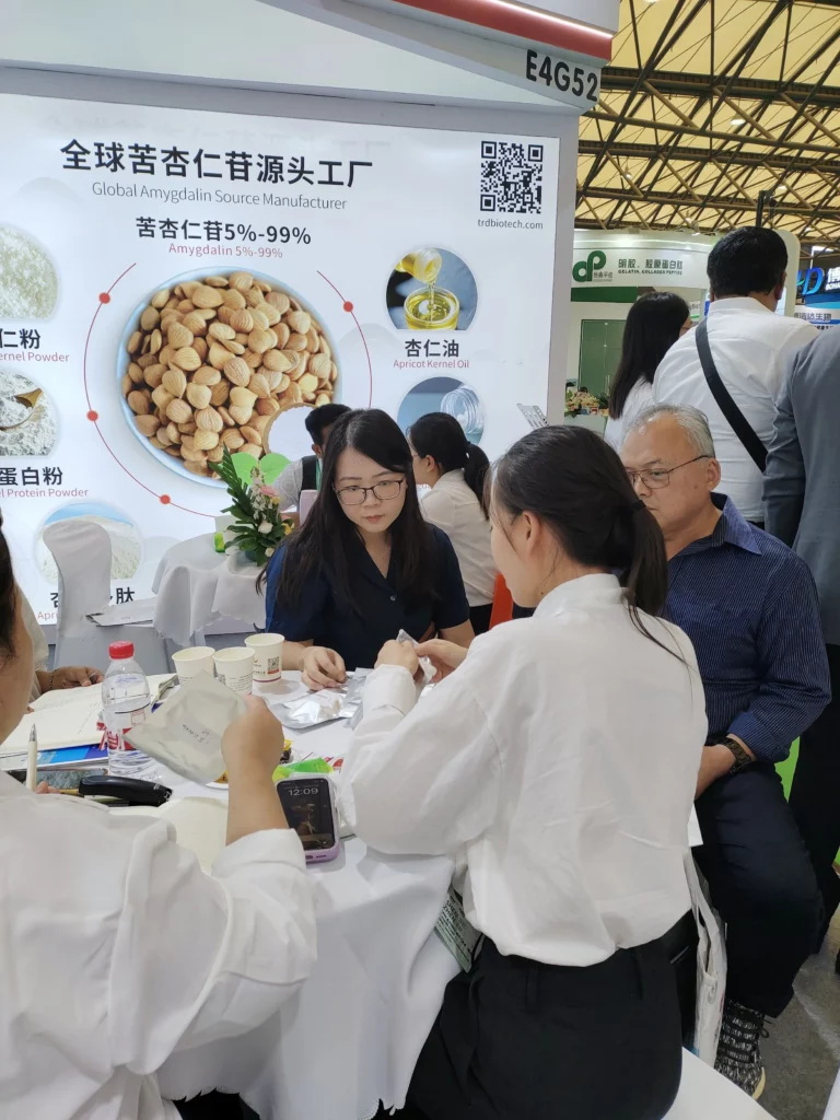 Amygdalin and derivative products: covering 5% – 99% amygdalin, extending to almond powder, almond protein powder, almond oil, amygdalin capsules, etc., to meet the needs of multiple fields such as food, medicine, and nutritional supplements. With high-quality raw materials and fine extraction technology, it attracts a large number of professional visitors to stop and consult.
